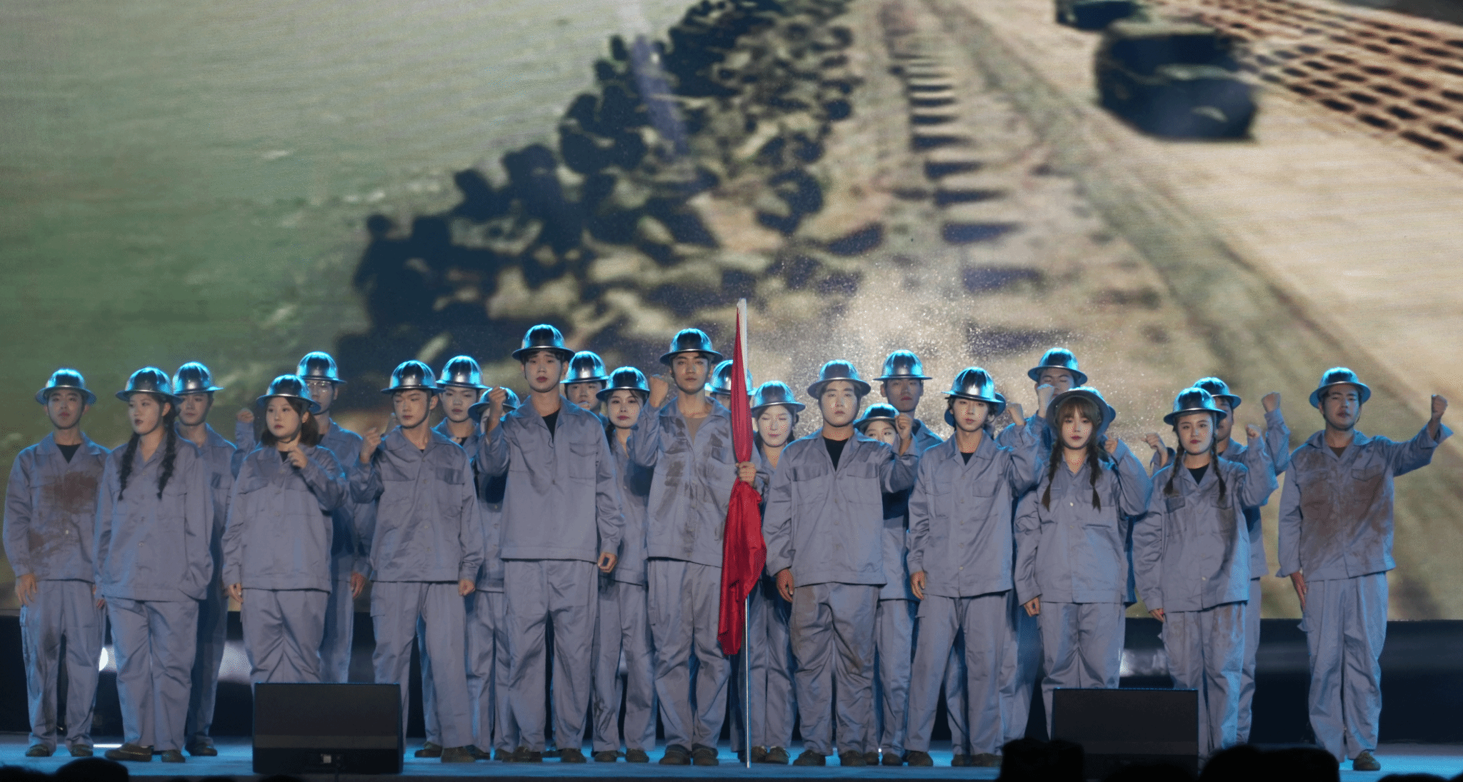 演出以艺术化的叙事和宏大的历史视角,围绕“荒原西风天涯路”“行路筑岩终不悔”“青春跃动阑珊处”和“长卷新程河海相拥”四个篇章展开,生动演绎出老一辈建设者们“石油精神”的内核,也描绘了学校面向国家能源需求应运而生、在发展中砥砺前行的生动图景。这不仅是学校思想文化建设成果的集中展现,更将校史校情、校训校风背后蕴含的精神内核,转化为可感可知的生动教材。