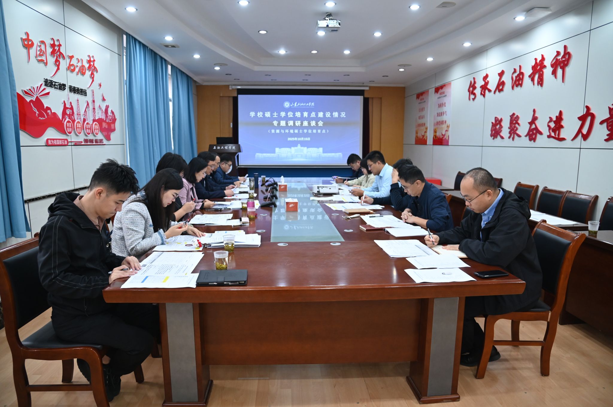 调研期间,石油工程学院、智能制造与控制工程学院、化学工程学院负责人分别就相关硕士学位培育点的建设现状、现存短板以及后续建设思路进行了专题汇报。与会人员围绕建设目标、核心指标突破、资源整合优化以及下一步重点举措等关键问题开展深入讨论,提出了建设性意见建议。