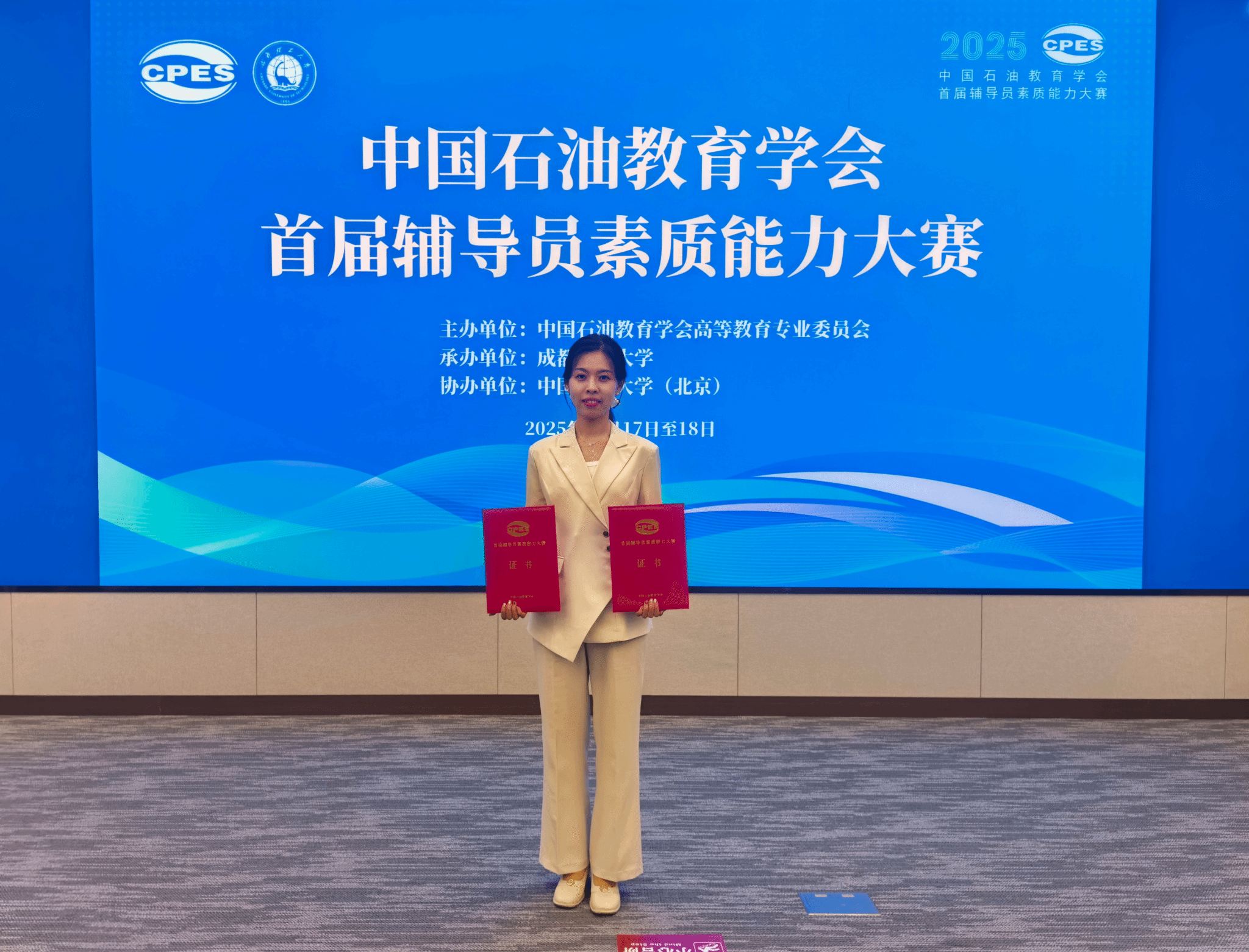 10月17日至18日,中国石油教育学会首届辅导员素质能力大赛决赛在成都理工大学举办。经过激烈的角逐,我校化学工程学院辅导员赵欣颖获一等奖、最佳学情分析奖,智能制造与控制工程学院辅导员邢丹获二等奖。