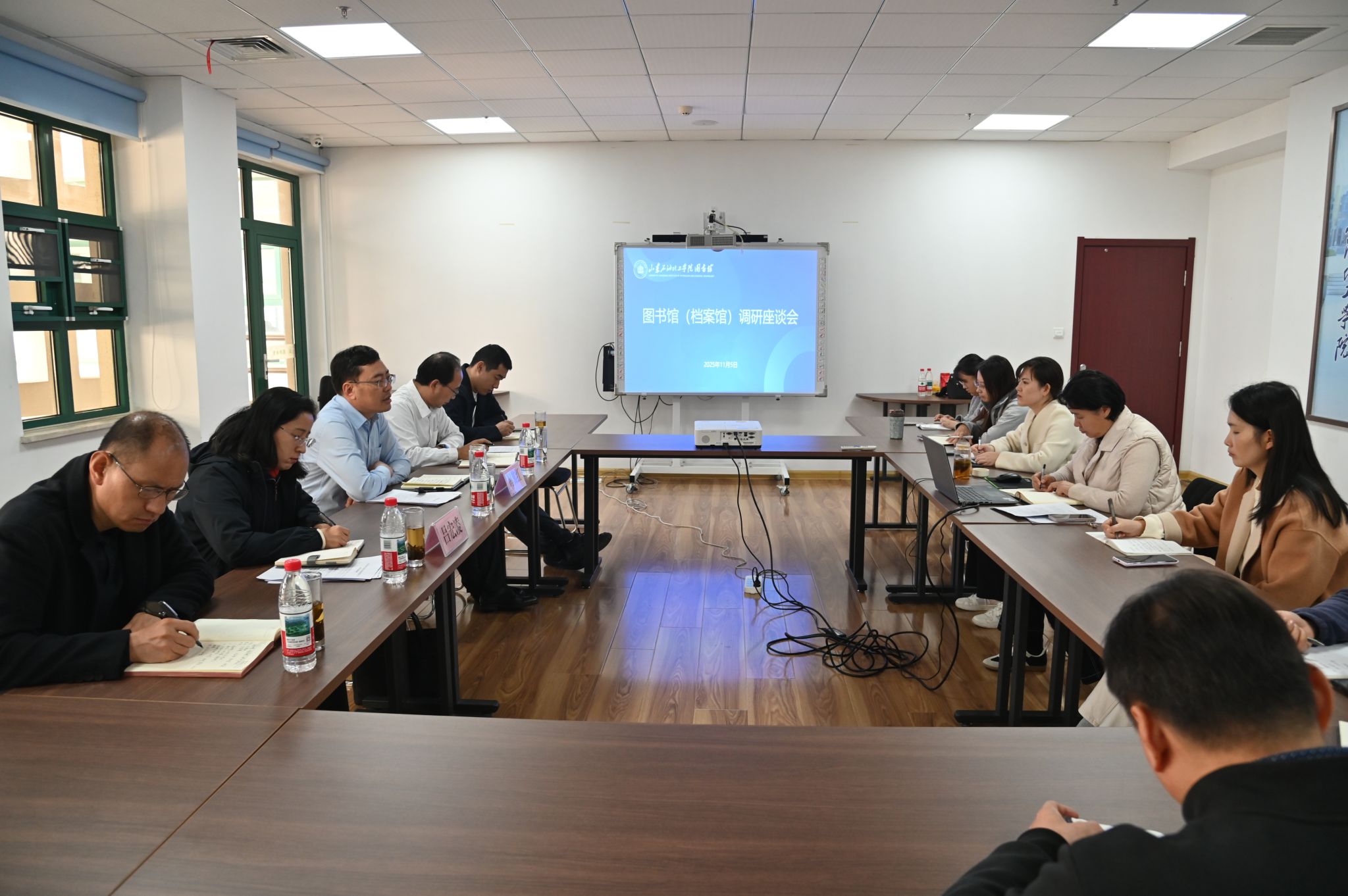 调研中,图书馆(档案馆)汇报了近期工作进展、2025年档案收集归档情况,重点介绍了校史脉络梳理、校史馆建设思路等工作的推进情况。