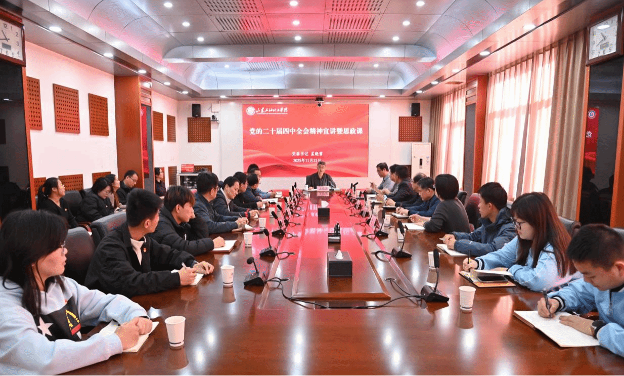 为深入学习宣传贯彻党的二十届四中全会精神,引导全校干部师生把思想和行动统一到全会精神上来,11月21日,党委书记孟晓雷作党的二十届四中全会精神专题宣讲,并为师生代表讲授思政课。