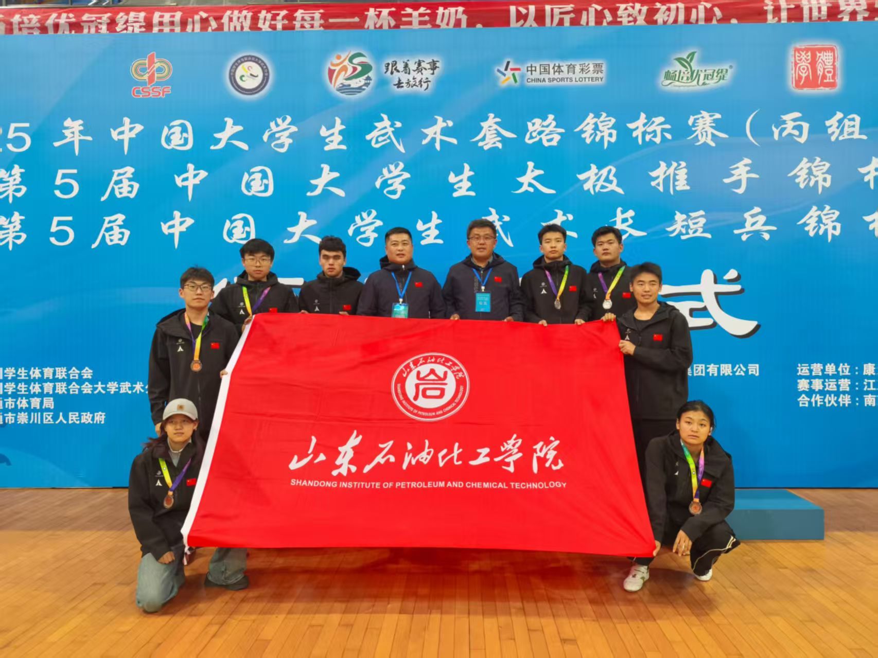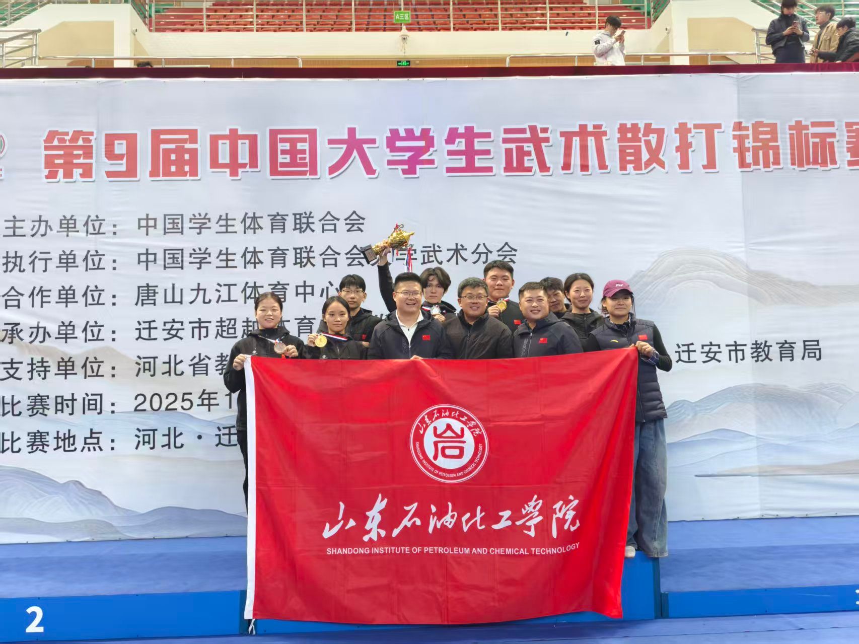 同期举办的第九届中国大学生武术散打锦标赛汇聚了160余所高校的千余名选手,赛事激烈、对决精彩。我校队员凭借过硬基本功、灵活战术与稳定心态,历经五天鏖战,最终夺得2金2银1铜的优异战绩,并凭借整体优势荣获团体总分第二名,刷新我校在该项赛事的历史最佳成绩。
