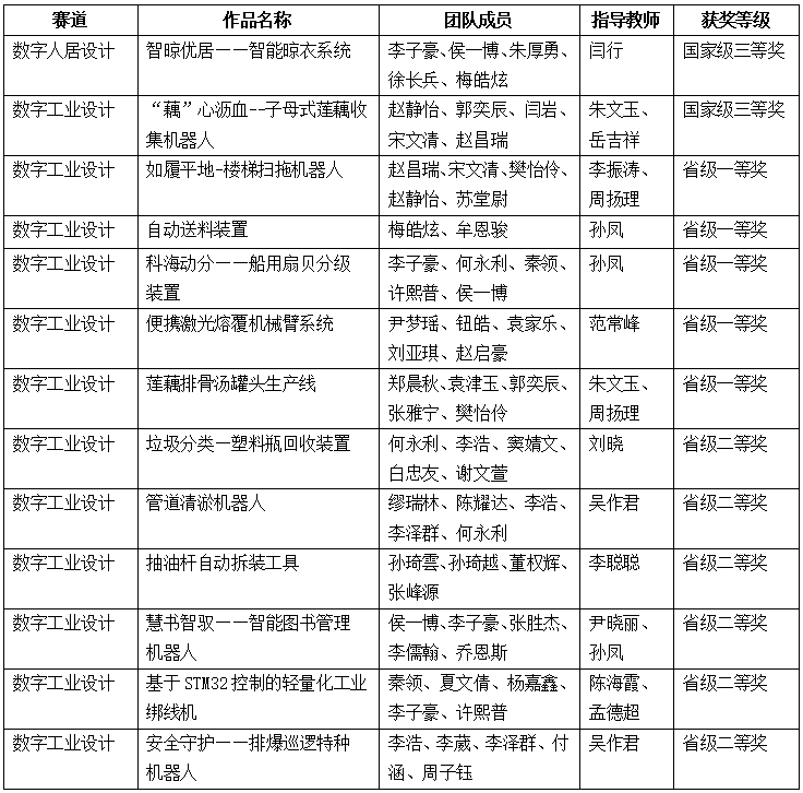近日,第18届全国三维数字化创新设计大赛落幕。经过学校初赛、山东省复赛、全国总决赛的激烈角逐,我校智能制造与控制工程学院多支学生团队最终全国三等奖2项,以及省级一等奖5项、二等奖6项的优异成绩。