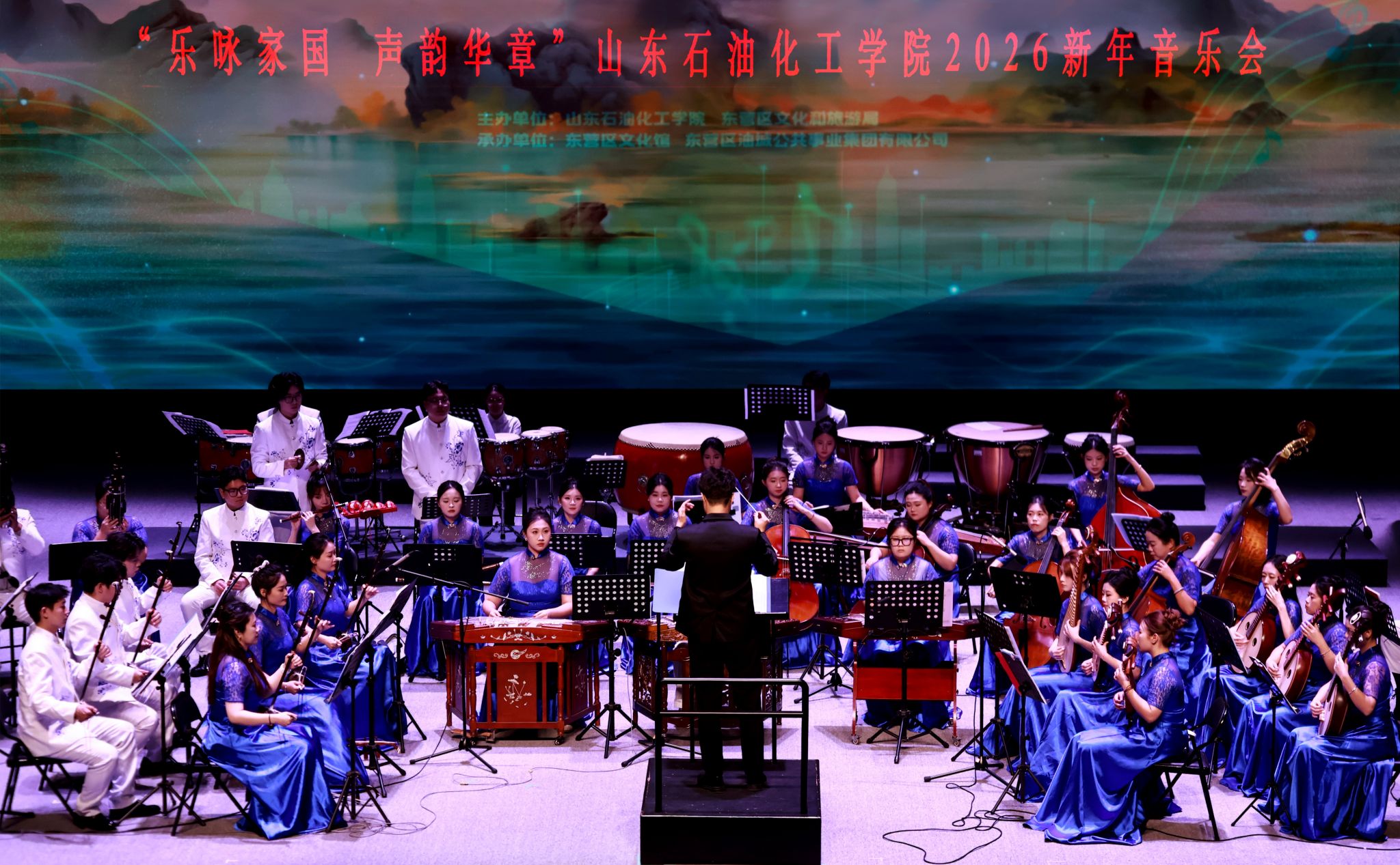 12月30日晚,“乐咏家国 声韵华章”山东石油化工学院2026新年音乐会在东营区艺术中心精彩奏响。这是学校连续第二年与东营区携手,以音乐为纽带,共贺新年,为油城人民奉献了一场融艺术高度与情感温度于一体的文化盛宴。