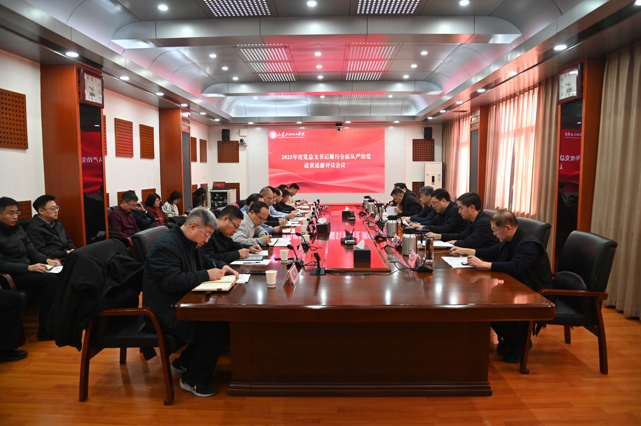 1月15日,学校召开2025年度党总支书记全面从严治党述责述廉评议会议。党委书记孟晓雷作点评讲话,党委副书记马洪军主持会议。学校党委领导班子成员出席会议,各党总支书记、副书记,有关职能部门负责同志和专职组织员参加会议。