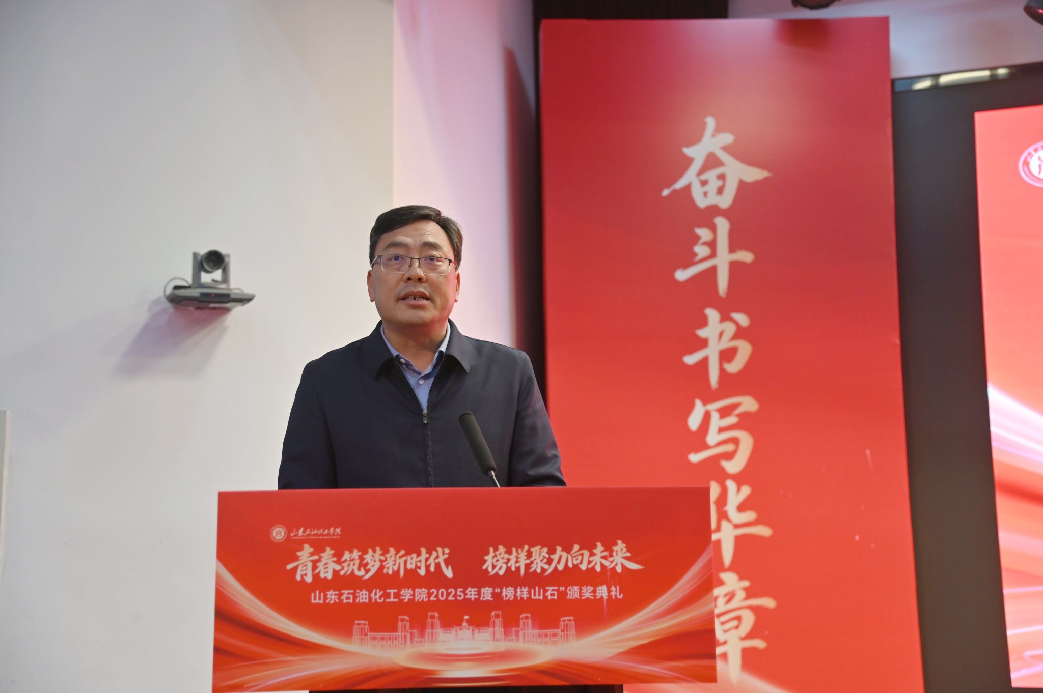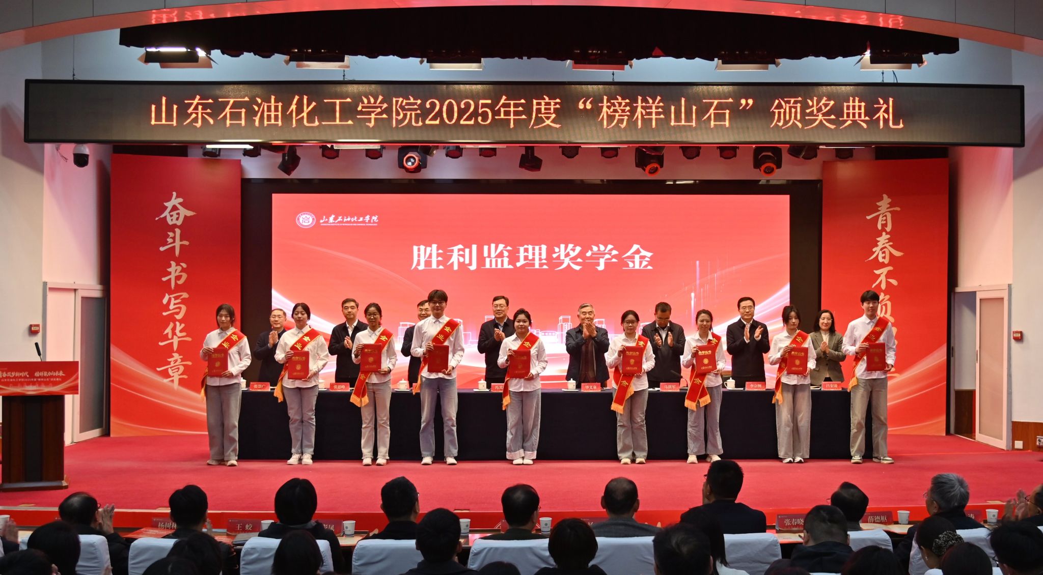 3月31日下午,山东石油化工学院2025年度“榜样山石”颁奖典礼在学术报告厅举行。校党委副书记、校长冯其红出席典礼并讲话。山东石油学会副理事长、秘书长毕义泉,山东胜利建设监理股份有限公司党委副书记、副总经理、总工程师吕涛作为设奖单位嘉宾应邀出席。校党委副书记马洪军主持典礼。
