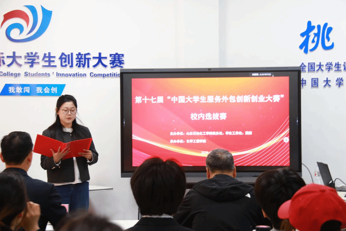 为深化产教融合,激发大学生创新创业活力,3月24日,由山东石油化工学院教务处、学生工作处、团委主办,化学工程学院承办的2026年第十七届“中国大学生服务外包创新创业大赛”校内选拔赛在科创中心落幕,我校10支队伍进入校内选拔赛现场答辩环节。中国石油大学(北京)赵锁奇教授、山东省幸福河财税有限公司董事长李友刚、东营市金石投资有限公司投资运营部部长于鹏受邀担任评审团专家。
